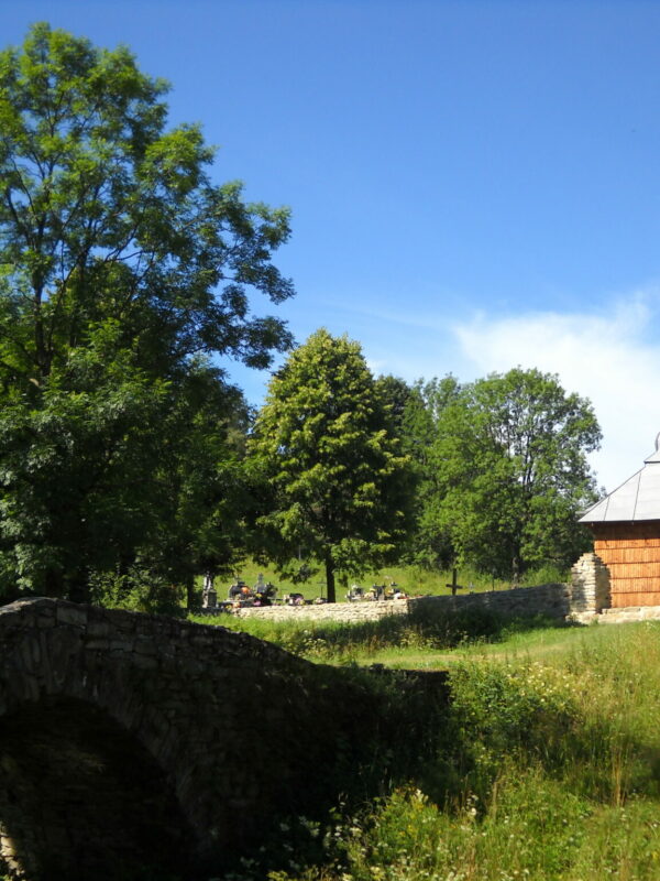 Z przełęczy schodzimy w dolinę potoku Wilsznia. Teren jest tu niestety dość podmokły i trzeba się liczyć, szczególnie po deszczach z błotem. Na lewo od szlaku znaleźć można cerkwisko i cmentarz nieistniejącej już wsi Wilsznia. Zobaczyć można także kilka przydrożnych, kamiennych krzyży. Wyglądają one jak wtopione w otaczające zarośla.