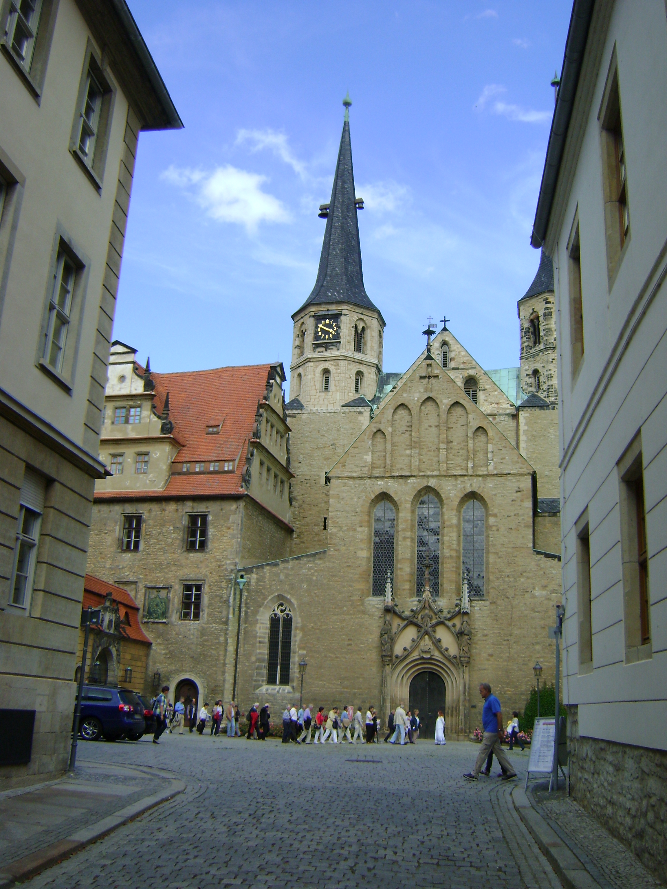 Merseburg jest z pozoru jednym z wielu podobnych do siebie saksońskich miasteczek. Na pierwszy rzut oka nie robi większego wrażenia, ale tutejsze zimne mury i podziemia ukrywają wiele dawnych tajemnic i przypominają o dawnej chwale. Najlepsze czasy dla Merseburga przypadły na XI-XII w., kiedy był siedzibą silnego wówczas biskupstwa. Odbywały się tu zjazdy w których uczestniczyli również polscy władcy – Bolesław Chrobry, Mieszko II, Bolesław Krzywousty. Najbardziej znanym nam z historii biskupem meresburskim był nijaki Thietmar – postać równie kontrowersyjna co intrygująca. Zasłynął jako autor kroniki, która choć pod względem wykonania stanowi niemałe arcydzieło jej treść może być dla niektórych mocno nieprzyjemna. Thietmar słynął bowiem z ostrego języka i mocnego zaangażowania w sprawy rodzącego się wówczas cesarstwa niemieckiego w którym widział ostoję całej cywilizacji. Bardzo krytycznie odnosił się nie tylko do polaków, ale też do innych narodów, które nie chciały podporządkować się jego wizji. Przede wszystkim jednak autor kroniki daje się poznać jako człowiek dobrze wykształcony w swojej dziedzinie, oczytany i świadomy zjawisk fizycznych i astronomicznych w stopniu znacznie odbiegającym od stereotypowego wyobrażenia o ludziach średniowiecza. Nie obawiał się również krytykować swojego cesarskiego zwierzchnika, jeśli uważał że jego decyzje były błędne, co jest zjawiskiem rzadkim nawet dzisiaj. Thietmar zmarł w 1018 r. w wieku zaledwie 43 lat i nie dożył koronacji Bolesława Chrobrego na króla. Ciekawe jak odniósłby się do tego w swojej kronice. Jego grób znajduje się w podziemiach tutejszej katedry świętego Jana i można go do dzisiaj oglądać.