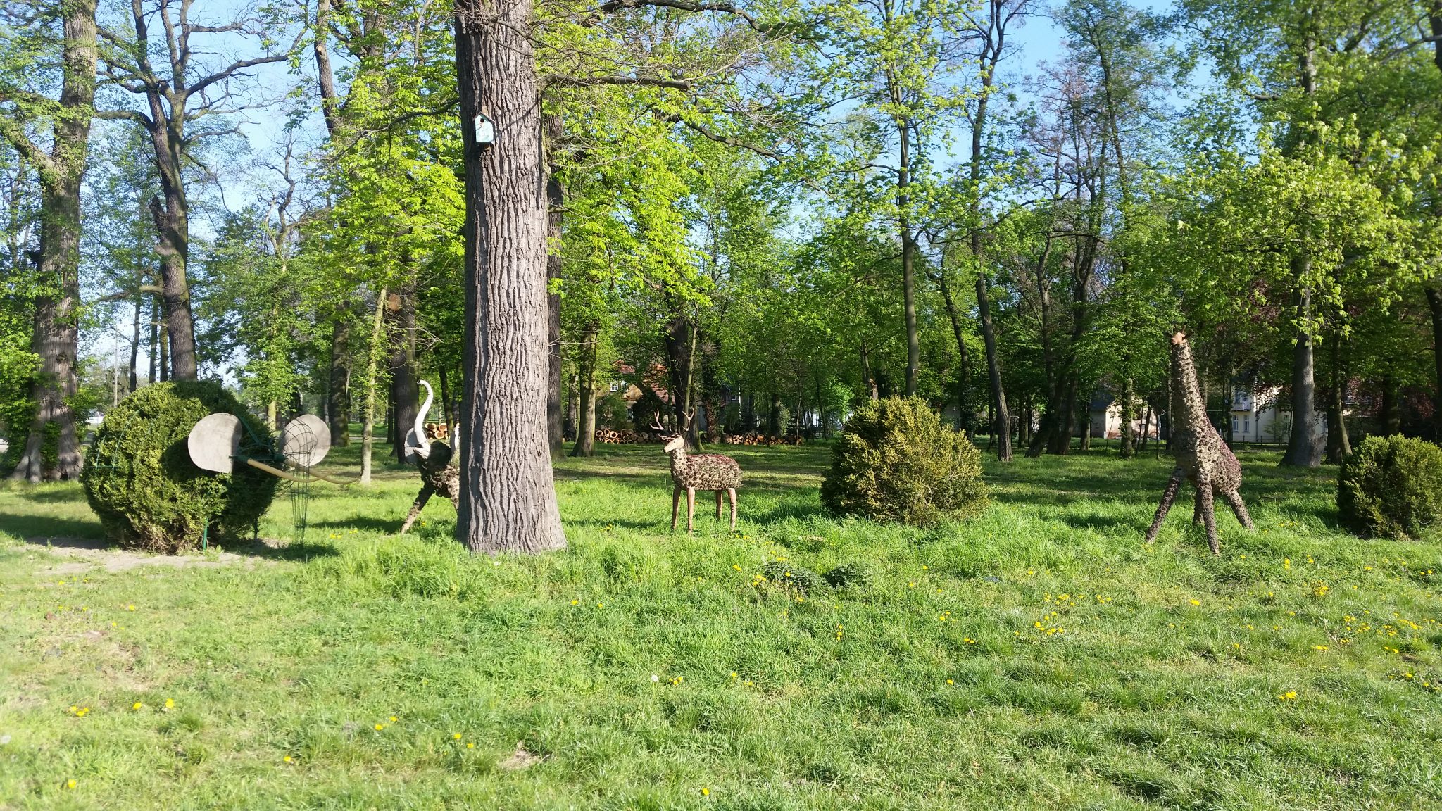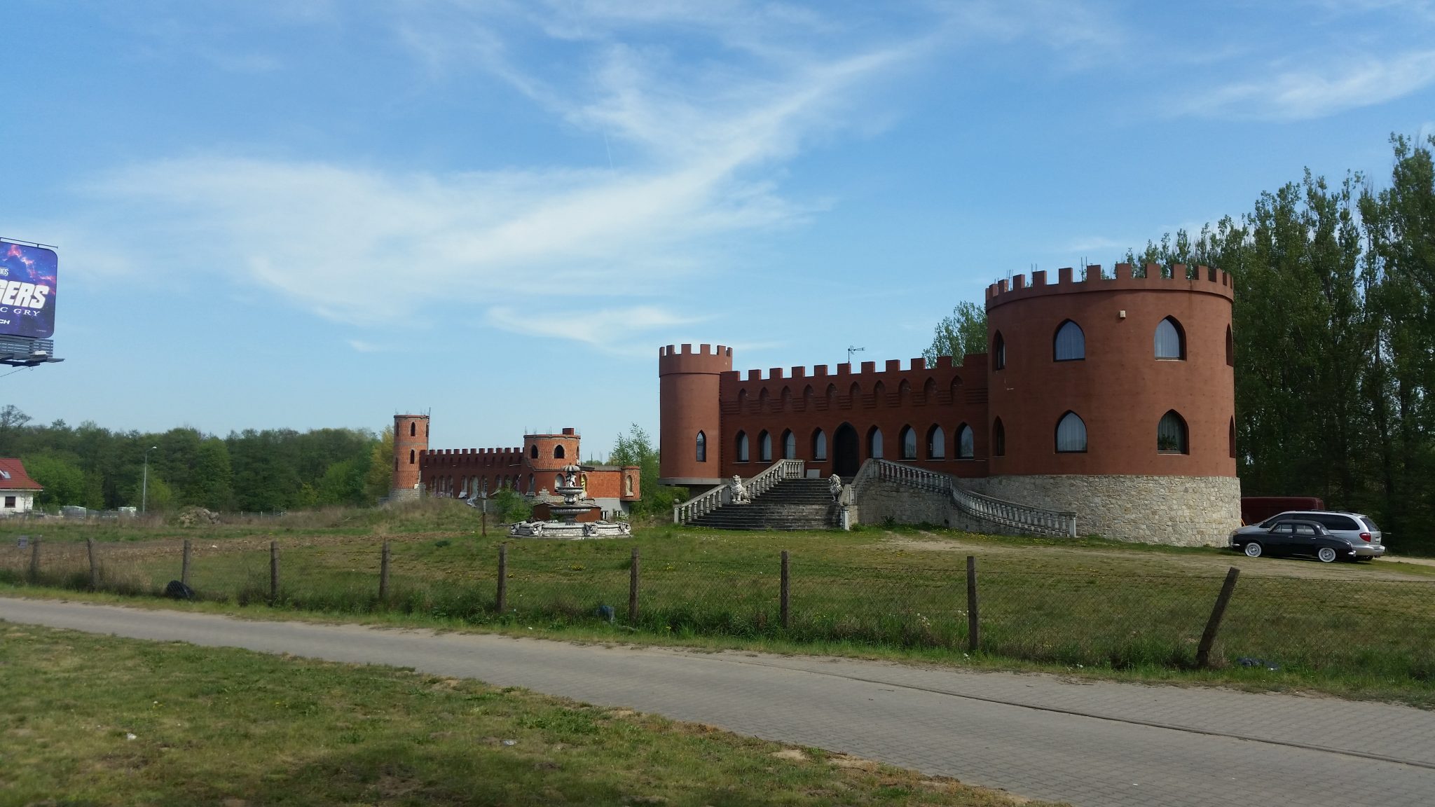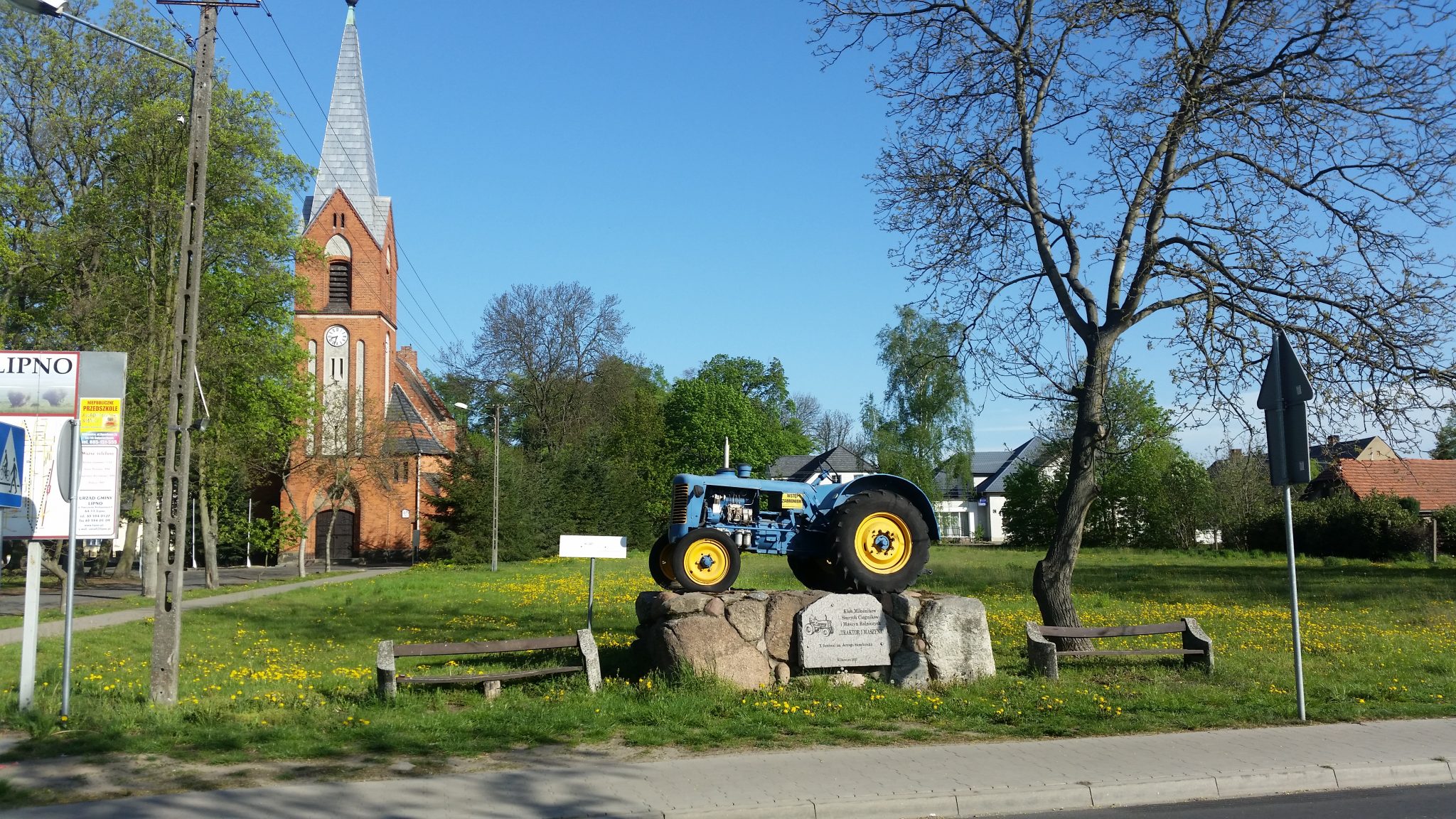 W końcu trafiam na DK 5, która na tym odcinku ma całkiem sensowne pobocza więc mogłem nią jechać w miarę bezstresowo. Do czasu aż postanowiłem z niej zboczyć. niestety znów wrąbałem się w leśny dukcik. W dodatku piaszczysty. Jakby tego było mało w poprzek drogi ustawiły się ciężarówki i rębaki które coś tam cięły i nie szło ich normalnie wyprzedzić. Klnąc więc pod nosem, zabrałem rower z bagażami na plecy i z mozołem przecisnąłem się na przełaj lasem. Udało się ale jeszcze trochę musiałem pobłądzić. W końcu jednak trafiłem na normalną asfaltówkę. Miałem nadzieję sfotografować coś fajnego, ale trasa w dużej mierze okazała się być nudna jak przedtem. Ledwo udało mi się namierzyć kilka lokalnych dziwadeł architektoniczno-krajobrazowych.