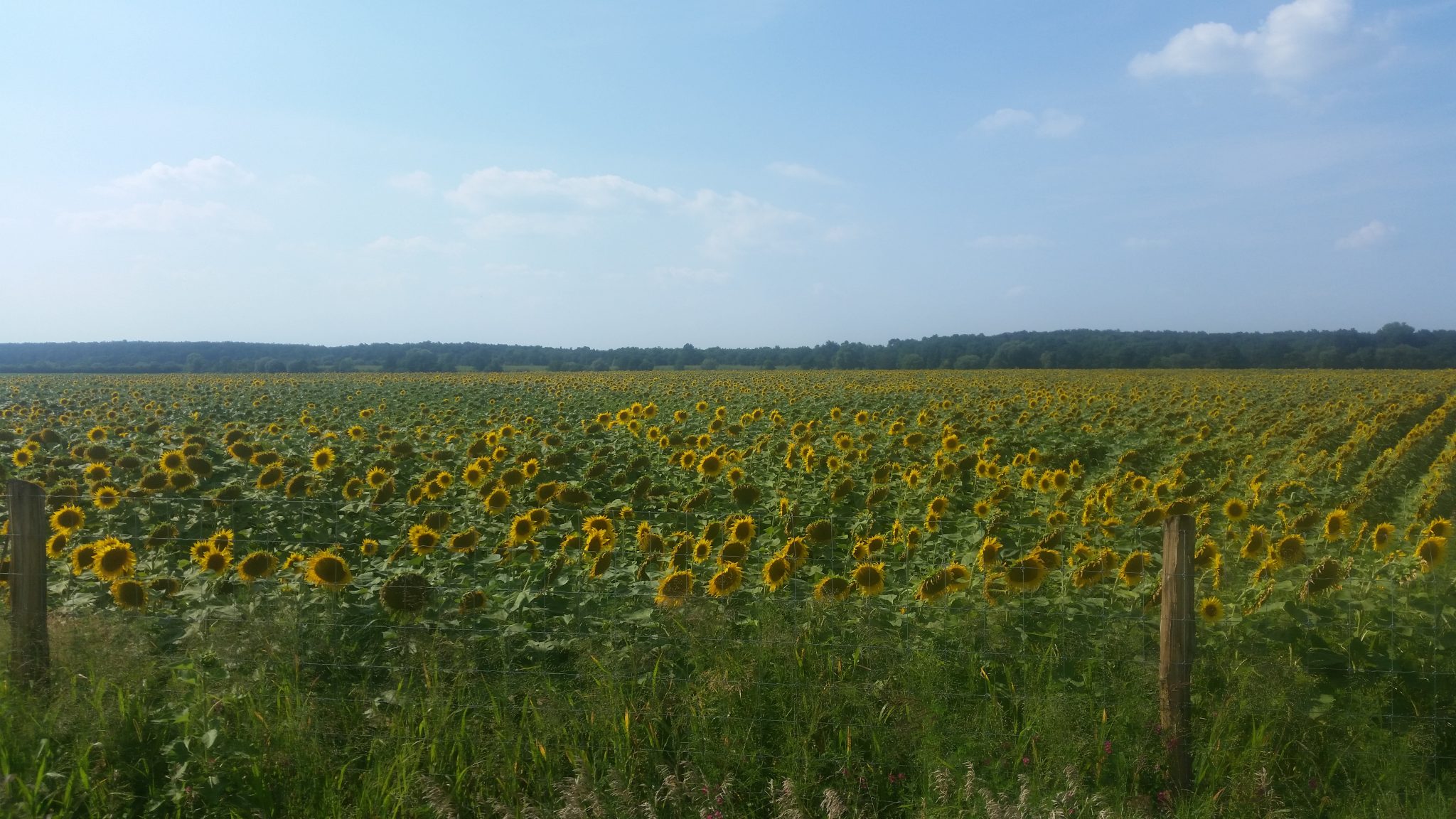 Pogoda była przepiękna. Sunęliśmy nieśpieszno po niemal pustym asfalcie podziwiając widoki, zwłaszcza to z czego Węgry najlepiej kojarzę – niekończące się pola słoneczników, które nigdy mi się nie znudzą. Choć muszę przyznać że w tym roku wygadały dość biednie. Na widoku były też nieliczne górki – znak że zbliżamy się do celu.