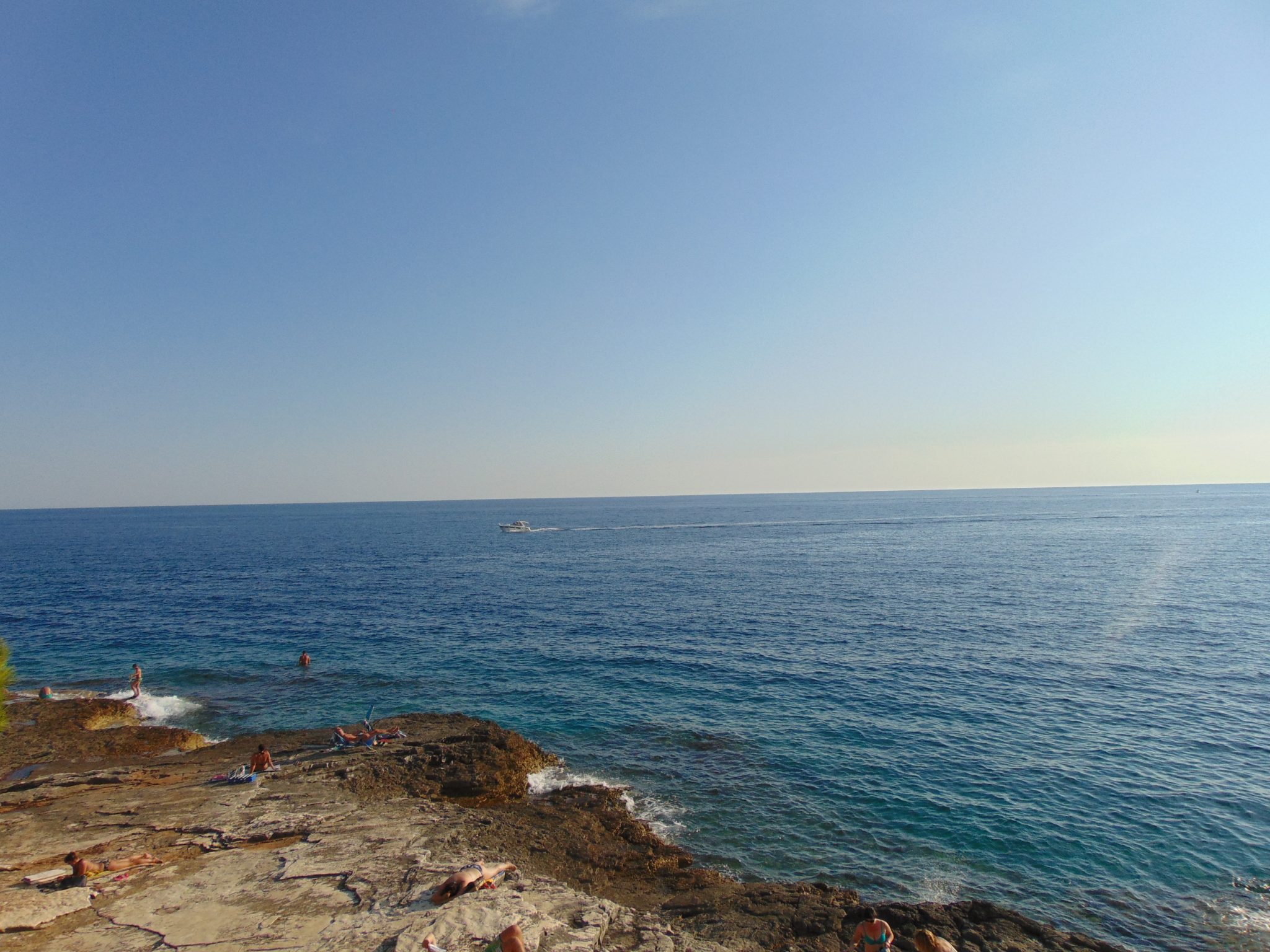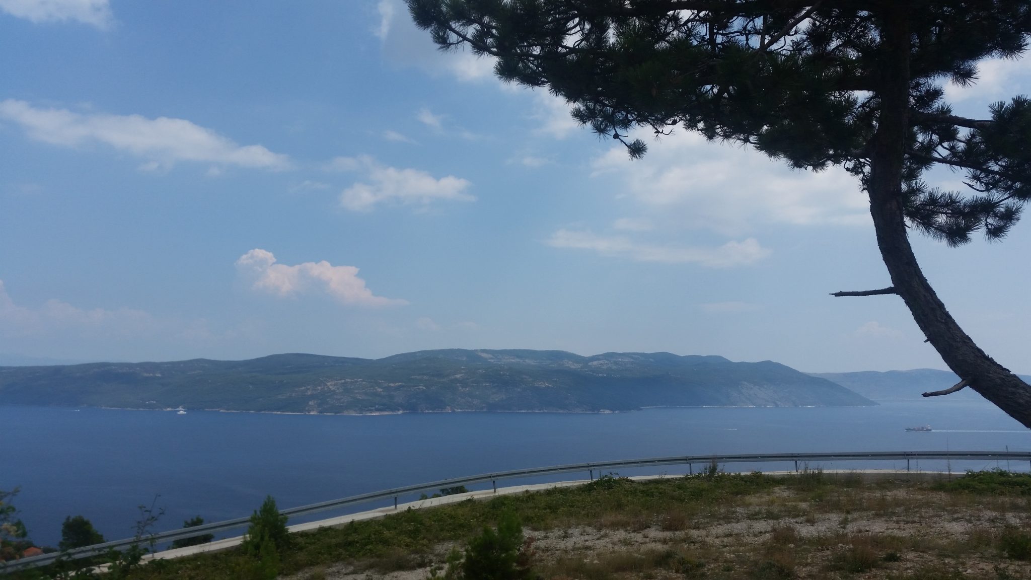 Dalsza droga była już co najmniej niesamowita. Kierowałem się na północ wzdłuż wybrzeża. Widok był niesamowity choć nieco przerażający. Znajdowałem się jakieś kilkaset metrów nad lustrem wody, a szosa nie była zbyt szeroka. Śmigało nią jednak wielu rowerzystów i to dodawało mi animuszu. Widoki rekompensowały wszystko – powietrze było tak przejrzyste że widać było położony kilkanaście-kilkadziesiąt kilometrów dalej, cel mojej podróży – Rijekę. Po drodze próbowałem znaleźć jakąś plażę by choć na trochę zanurzyć się w morzu, niestety wszystkie dostępne miejsca były zaklepane przez ośrodki wczasowe. Nic dzikiego nie udało mi się namierzyć.