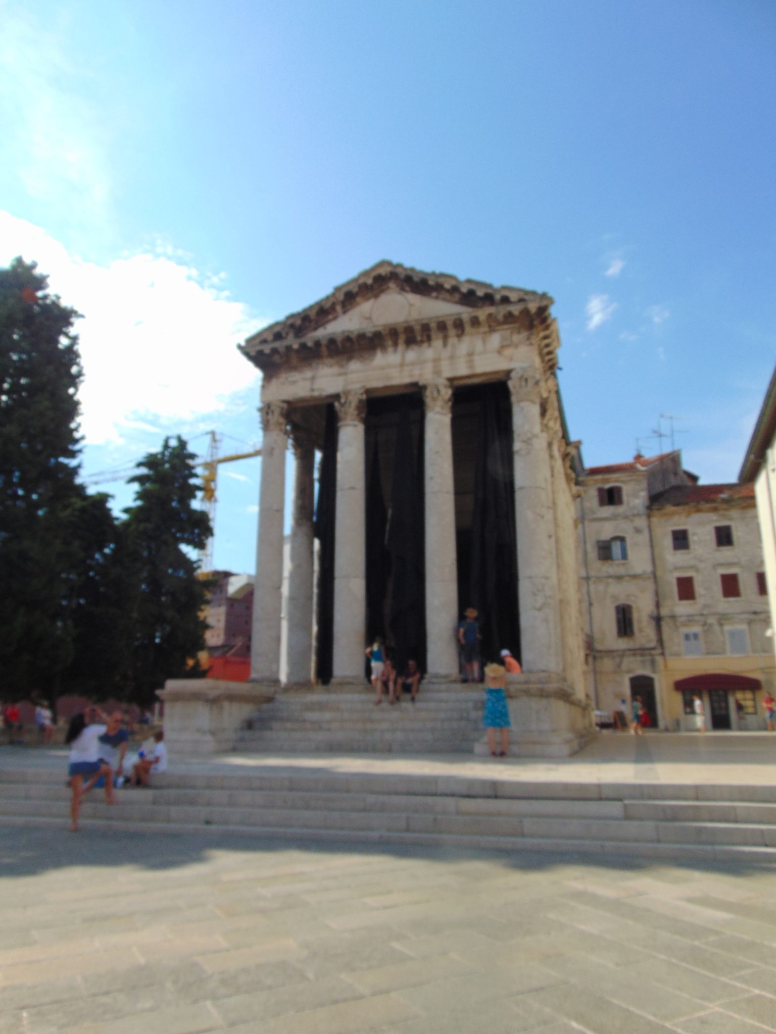 Niewiele wiedziałem wcześniej o Puli, poza tym że ma ogromny amfiteatr z czasów Cesarstwa Rzymskiego. Faktycznie był. Imponujący. Chyba nawet większy niż koloseum w Rzymie. Co ciekawe pełni swoją funkcję do dnia dzisiejszego, choć zamiast krwawych spektakli, odbywają się tu koncerty. Dlatego właśnie wejście do środka było nieco utrudnione, dlatego w końcu zadowoliłem się fotografiami z zewnątrz. I tak było super. Zrobiłem sobie jeszcze przejażdżkę po starówce, która była niezwykle klimatyczna, ale i o tej porze prawie pusta. Owszem można przyczepić się do obskurnych niekiedy elewacji czy szpecących graffiti (nie mylić z muralami), ale jako całość bardzo mi się podobało. Nic tylko fotografować. Antyku i tutaj ostało się całkiem sporo. Oprócz amfiteatru, można wypatrzyć tutaj świetnie zachowane bramy miejskie, świątynię Romy, a nawet łuk triumfalny (Sergiusza). Wszystko z pierwszego wieku naszej ery. Sporą frajdę sprawiało mi również tropienie mniej znanych pozostałości Imperium, w postaci często wyrwanych z kontekstu detali które walały się gdzieś po parkach, ulicach, a nawet placach zabaw. Można by im jednak przydzielić większą ochronę, bo w ten sposób niestety szybko zniszczeją.