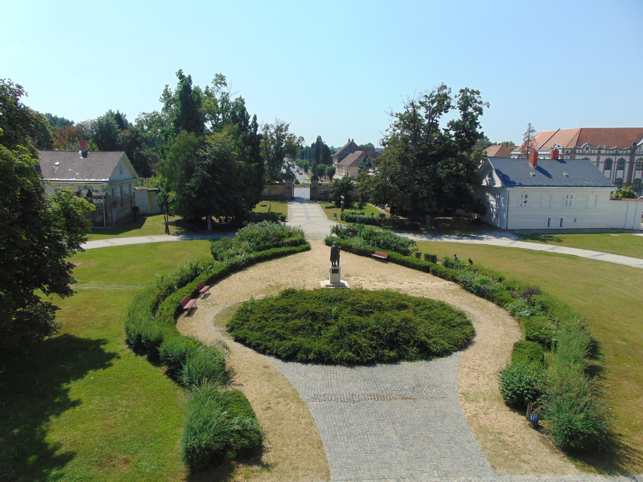 Zmęczony walką z żywiołem zatrzymałem się na dłuższy popas w miejscowości Körmend. Moją uwagę od razu zwrócił potężny kompleks pałacowy (jak się okazało pałac Batthyánych). Elewacja była niestety nieco obskurna, ale wszystko wskazywało na to że to przyczynek do generalnego jej remontu. Na szczęście obiekt był normalnie dostępny do zwiedzania (pełnił funkcję muzealną), z czego skwapliwie skorzystałem. Wystaw nie było może zbyt dużo ale podobały mi się. Nie brakowało interaktywnych elementów i np. można było spróbować swoich sił na olbrzymim bicyklu. Ciekawe doświadczenie, ale raczej nie mógłbym podróżować w ten sposób.