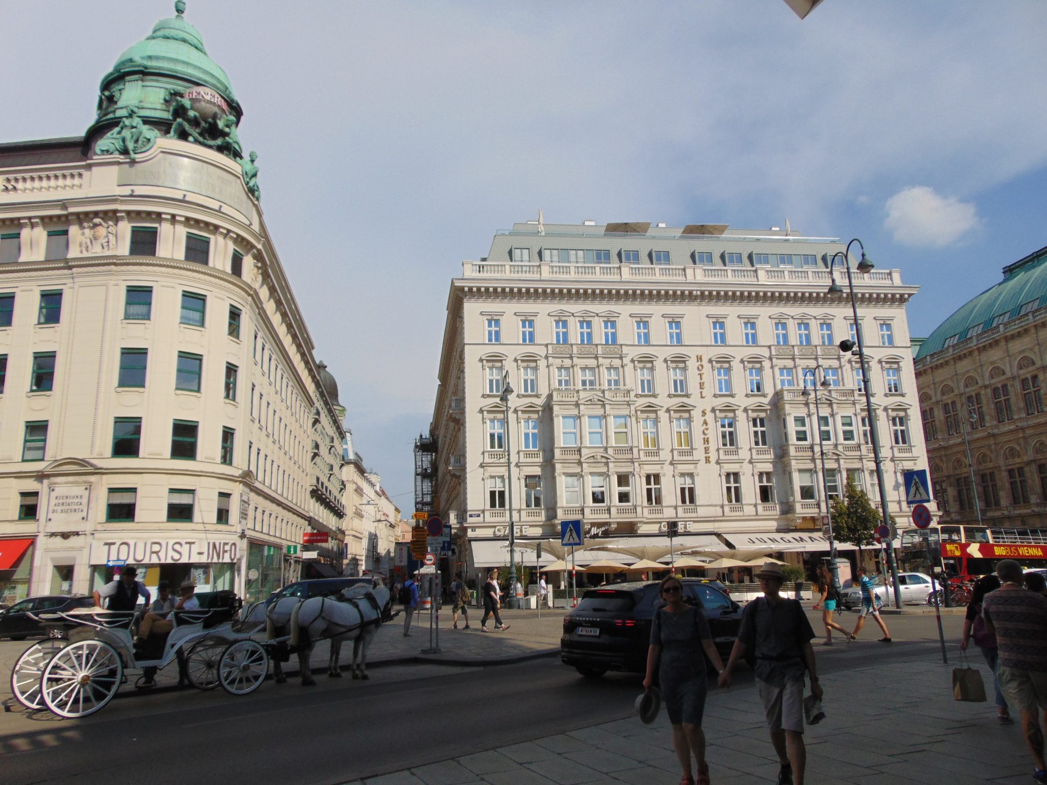 Wiedeń był już bliziutko. Mimo wszystkich perypetii wciąż było dość wcześnie. Nie miałem zbyt wiele do czynienia ze stolicą Austrii, ani tym bardziej miłych wspomnień – pamiętałem ją jako raczej brzydką i zatłoczoną. W kontraście do pięknych gór i prowincji. Teraz początkowo nie poprawiałem swojej opinii, bo wjeżdżałem chyba od najbrzydszej strony. W dodatku pełno było remontów. Ścieżki rowerowe też nie były wcale częste… Na starówce było już jakby lepiej, ale wciąż nie czułem klimatu. Zatrzymałem się za to w galerii Albertina, gdzie mogłem nadrobić zaległości sztuki współczesnej i klasycznej. Ta wizyta choć droga była bardzo przyjemna. Tym bardziej że oprócz porządnej porcji sztuki, miło było pochodzić po budynku, który był bardzo pomysłowo i elegancko zaprojektowany, co zdarza się raczej nieczęsto. Tutaj duży plus.