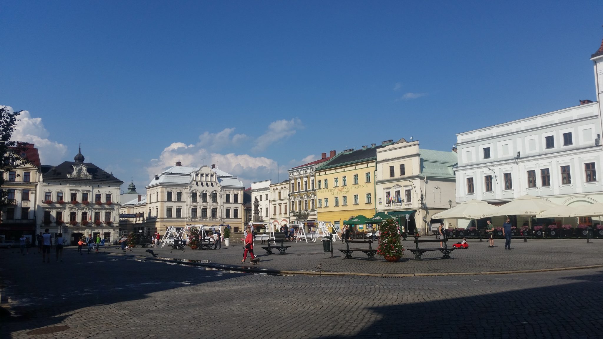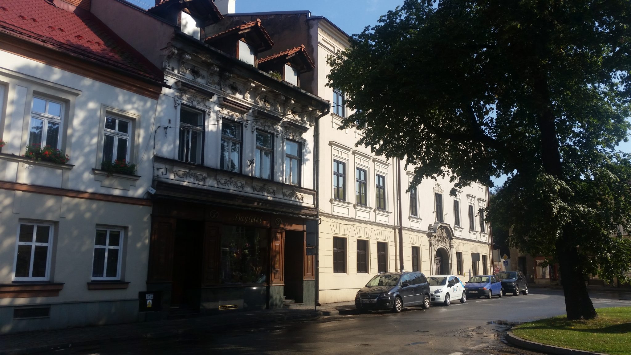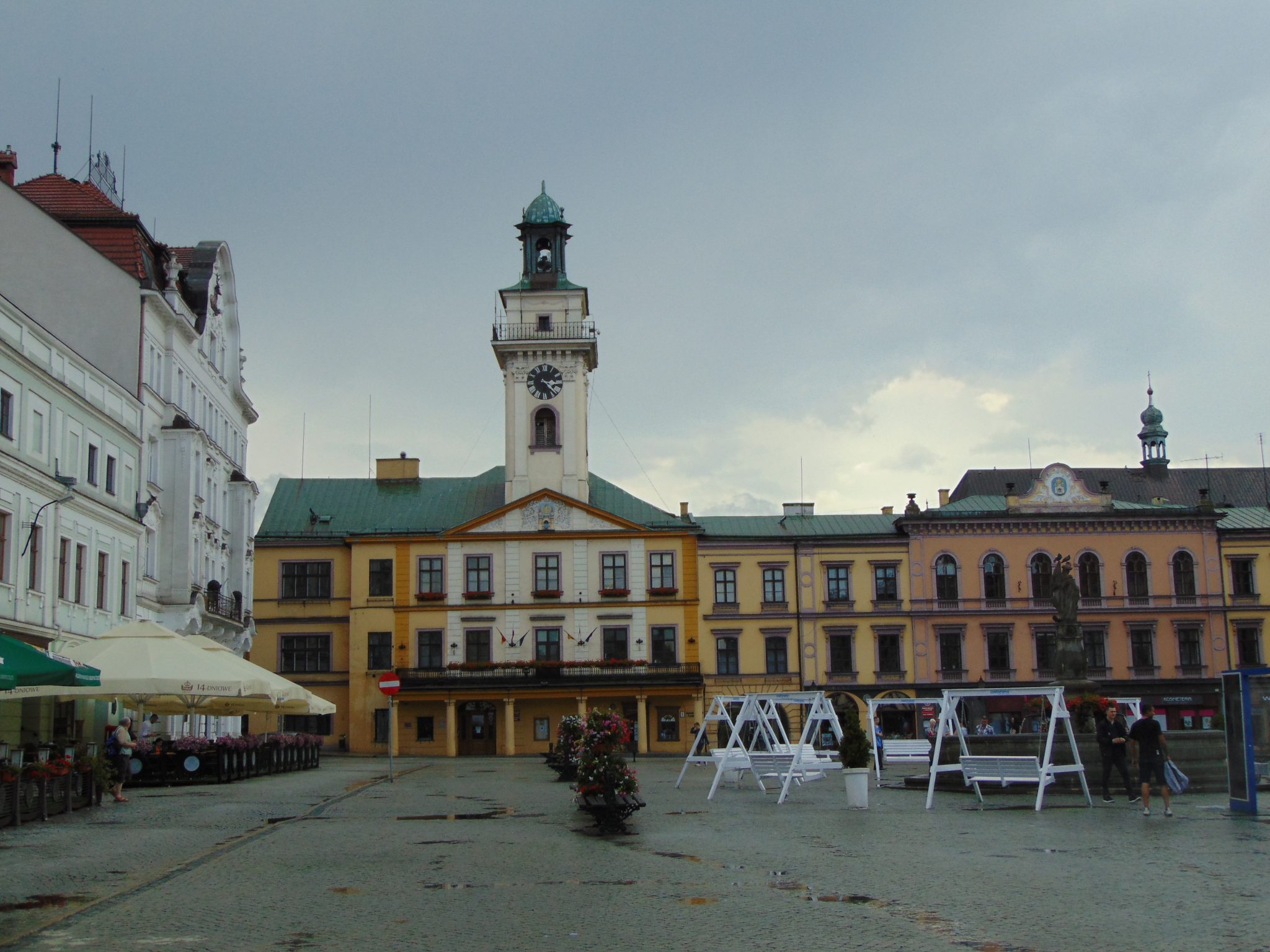 Do Cieszyna dotarliśmy w miarę prędko. Zdałem sobie sprawę (rychło w czas) że niezbyt dużo kraju zdążyłem pokazać mojemu towarzyszowi, więc postanowiliśmy pozwiedzać przynajmniej miasto na spokojnie. Tym bardziej że byłem już tu wcześniej parę razy i znałem tutejsze atrakcje. Niestety pogoda w tym momencie znów pokazała nam f… igę z makiem, bo gdy już mieliśmy się wspiąć na wzgórze zamkowe by obejrzeć znaną choćby z 20-złotówki rotundę, lunęło naprawdę fest i to tak że nie dało się wyściubić nosa spod wiaty. Zdenerwowani i przemoczeni zaczęliśmy szukać więc restauracji, aby chociaż coś konstruktywnie wszamać, bo sporo smakołyków nam jeszcze zostało do wypróbowanie. Niestety szczęście tego dnia chyba wzięło sobie od nas wolne, bo wszystkie znane mi lokale były już pozamykane, w tym serwujące tutejszy rarytas – śledziową kanapkę na którą miałem szczególnie ochotę. Musiałem obejść się smakiem. Ville przynajmniej nie lubił śledzi więc niczego nie stracił. Znaleźliśmy w końcu czynny lokal, gdzie można było przynajmniej zjeść dobrego żurku i obejrzeć kawałek meczu z mundialu. To już coś.