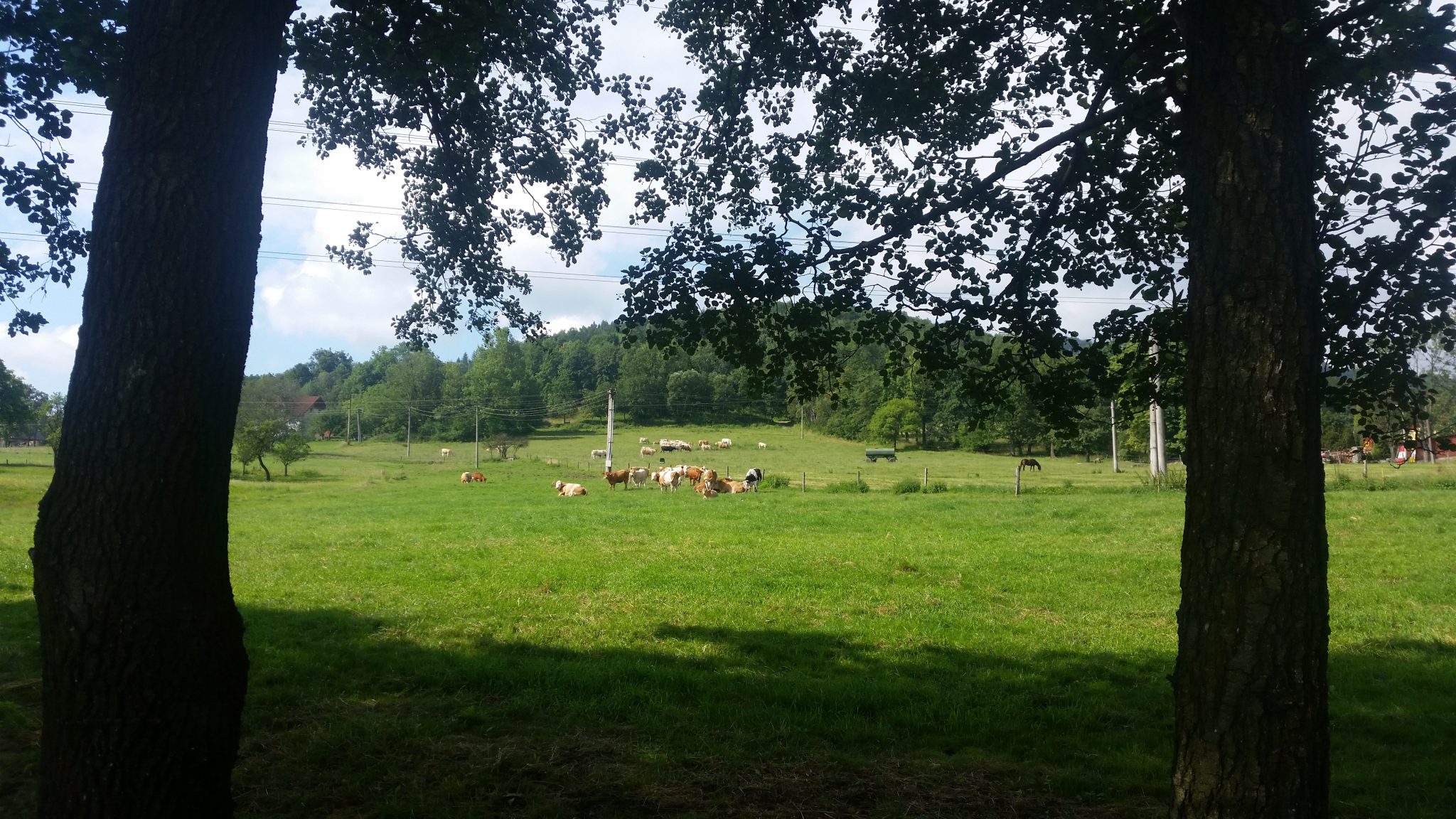 Nie miałem pomysłu na nocleg, ale nie sądziłem że będzie to problem. Okazało się jednak że w mieście trwał festiwal filmowy więc obłożenie miejsc w noclegowniach było znacznie większe niż zazwyczaj. Koniec końców trzeba było jechać spać do Czech. Może to i lepiej bo gdyby nie ta dogrywka to pokonalibyśmy śmiesznie mały dystans. Droga przynajmniej była ciekawa, bo biegła częściowo szlakiem rowerowym przez leśne wzgórza, wzdłuż Olzy. Jak na ironię wyszło słońce i zrobiło się bardzo ciepło. Rychło w czas… Nawet nie zorientowaliśmy się kiedy przekroczyliśmy granicę.