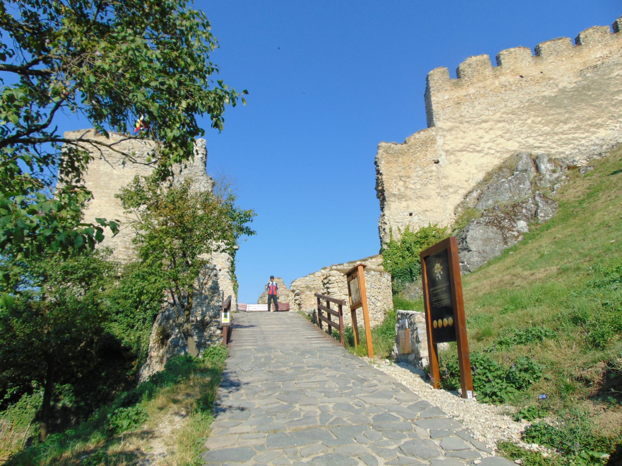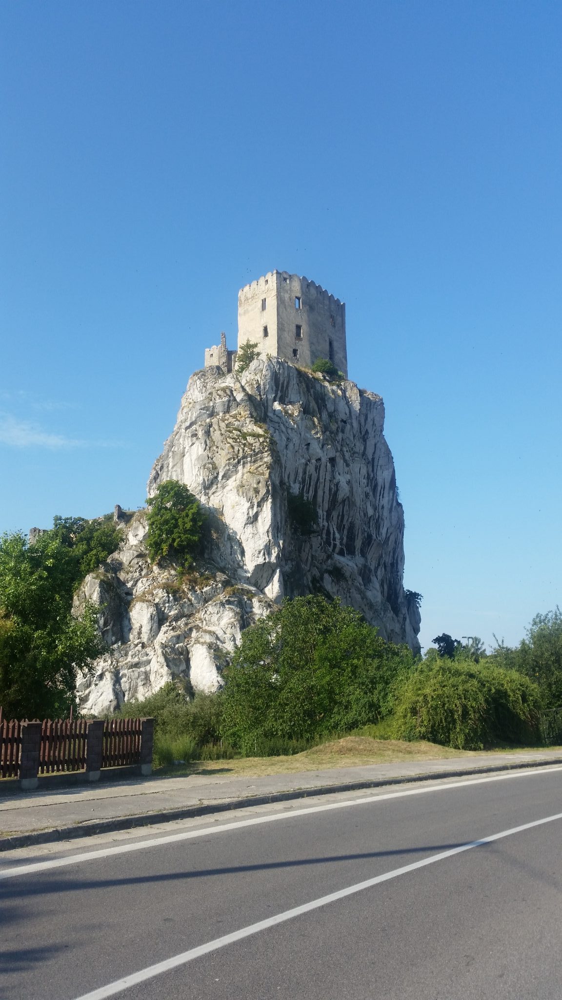 Po zakończeniu polowych prac higienicznych spakowaliśmy bety i ruszyliśmy w dalszą trasę. Chcieliśmy jak najdłużej spędzić czasu poza upałem. Nie zajechaliśmy jednak długo. Widzieliśmy wcześniej wiele zamków po drodze, ale to co zobaczyliśmy w Bećkovie, zaskoczyło nas totalnie. Przez chwilę staliśmy na poboczu z rozwartymi japami z wrażenia i nie mogliśmy wyjść z podziwu. Już samo położenie było niesamowite – długi, wysoki na prawie 250 m ostaniec skalny sam w sobie byłby niezwykle malowniczy. Kompleks ruin średniowiecznego zamku dodawał mu jednak klimat po prostu bajeczny. Można by tu kręcić „Grę o Tron”, czy inne historyczne bądź fantastyczne superprodukcje.