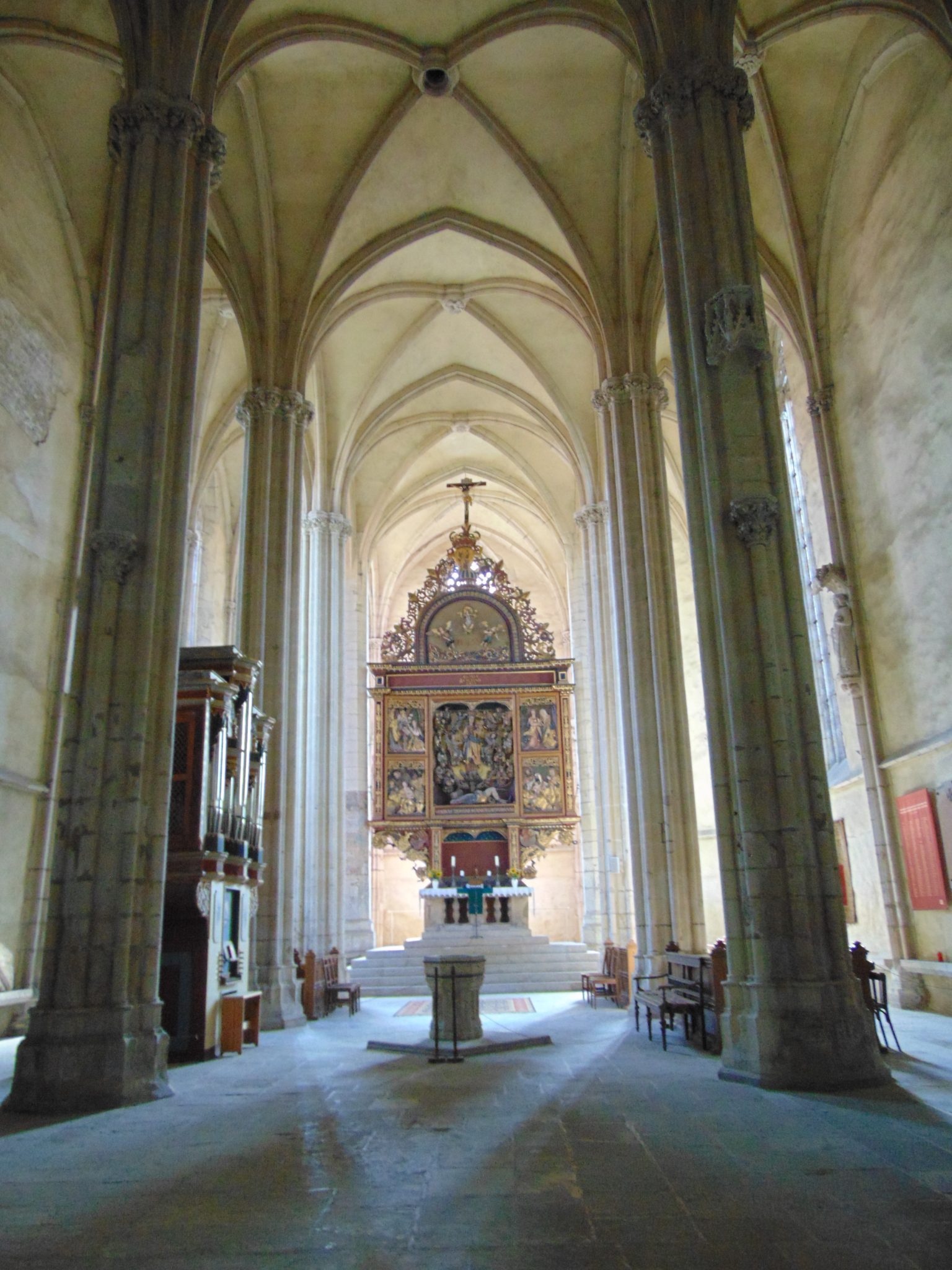Pierwszy postój zaliczyłem w Sebesie. Początkowo chciałem się zatrzymać tylko na bułkę z bryndzą, ale że czas był dobry to postanowiłem pozwiedzać co nieco. Zwłaszcza że potężny i piękny kościół obecnie ewangelicki, ale wybudowany XIII w., wyglądał bardzo zachęcająco. Udało mi się go zwiedzić za symboliczną opłatą. Myślałem początkowo że to jeden ze słynnych warownych kościołów, ale okazało się że jednak nie. Niemniej jako fan architektury gotyckiej byłem zadowolony.