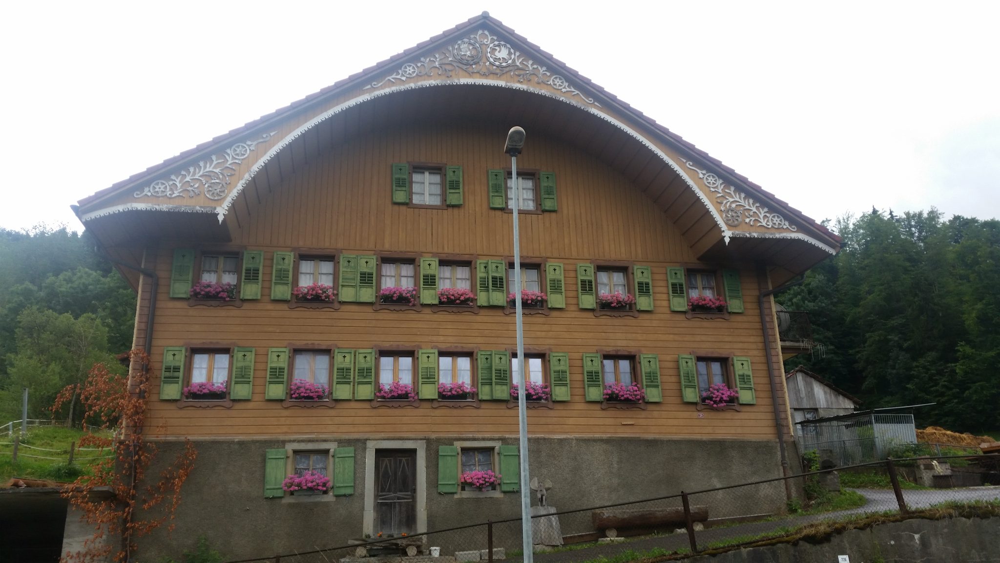 Nie dość że lało jak z cebra to jeszcze wiało w nos. Choć góry były dosłownie na wyciągnięcie ręki to z powodu chmur nie było prawie nic do oglądania. Przez pierwsze kilometry snułem się niemiłosiernie wolno, chowając się pod każdym możliwym zadaszeniem i rozpaczliwie próbowałem coś zobaczyć. Nawet się udało. W Szwajcarii mają naprawdę znakomite publiczne toalety, a przy tym są darmowe, co jest raczej rzadkie w krajach zachodnich. Tak więc jeśli tak samo jak mi zdarzy wam się tu kiblować z powodu braku pogody, to przynajmniej w porządnych warunkach. Tymczasem ceny są tu naprawdę najwyższe na świecie. Myślałem że w Finlandii było drogo, ale tu dla przykładu butelka coli w sklepie potrafi kosztować 12 złotych, a z resztą produktów wcale nie jest lepiej…