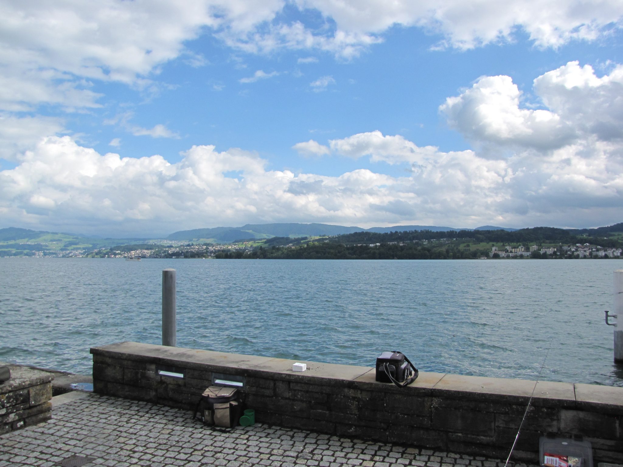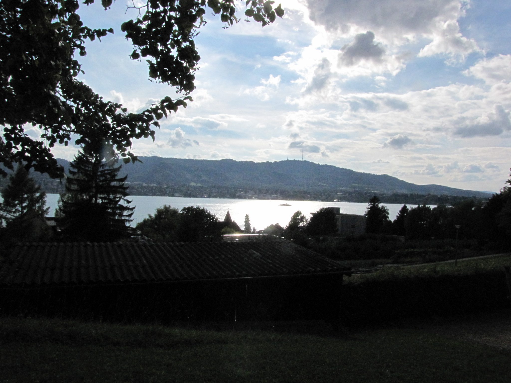 Wyjechałem z Rapperswilu w znacznie lepszym humorze. Pogoda zupełnie niespodziewanie poprawiła się i nawet wyszło słońce. Od razu zrobiło się przyjemniej. Nocleg czekał na mnie na przedmieściach Zurychu. Ale zanim zacząłem go szukać, wdrapałem się na pobliskie wzgórze i postanowiłem posiedzieć trochę na słońcu. To był dobry pomysł bo okazało się że można tutaj wziąć sobie leżankę do leżenia, które leżały sobie na stosie zabezpieczone łańcuchem na zasadzie wózków sklepowych. Nigdy nie widziałem czegoś podobnego a pomysł jest przecież genialny. Tak więc za kaucję 1 franka mogłem sobie podziwiać zachód słońca z widokiem na całe (no prawie) jezioro w komfortowych warunkach. Coś pięknego.