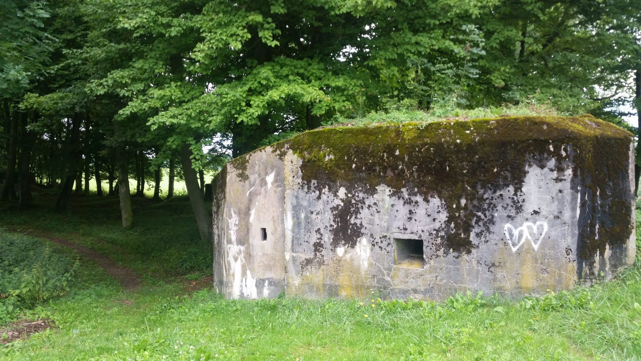 Niebo było stalowoszare, ale na szczęście siąpiło tylko czasami. Miało to nawet swój klimat bo wkroczyłem w strefę zmilitaryzowaną i to jedną z największych swojego czasu – linii Maginota (a przy tym najbardziej bezużytecznych). Początkowo betonowe konstrukcje widoczne były doskonale, gdy wyrastały na polach pszenicy niczym głazy narzutowe, lub puste muszle na plaży. Miejscowi chyba niezbyt ją lubią, bo wszystkie bunkry do których mogłem się zbliżyć byłby ogołocone do samego betonu i sądząc po zapach pełnią raczej funkcję nieformalnych szaletów (czyli mniej więcej jak u nas). Gdzieniegdzie pojawiają się szlaki turystyczne tudzież tablice informacyjne, ale szczerze mówiąc nie zachęcały do eksploracji i ostatecznie się nie skusiłem. Niemniej w tych miejscach nie doszło do większych bitew, więc nie ma tutaj skażenia rodem z niesławnej „rouge zone” znajdującej się przy granicy z Belgią, więc jeśli ktoś jest pasjonatem tego typu atrakcji może sobie sobie śmiało pójść na spacer.