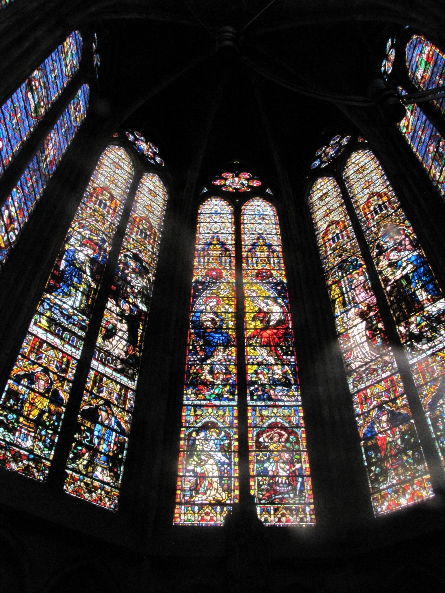 Nie było tak bajecznie ja Strasburgu, ale i tak było na co popatrzeć. Klimat był zupełnie inny, dominowała architektura murowana, a nieco egzotyki dodawały nasadzone wzdłuż ulic palmy. Również tutaj najpiękniejszą z budowli była katedra – pod wezwaniem św. Szczepana. Tu przynajmniej nie miałem problemu ze znalezieniem wejścia, więc mogłem nawet zwiedzić ją od środka. Budowla powstała z połączenia dwóch kościołów co nadało jej dość oryginalną bryłę. Nie posiada zbyt wysokiej wieży, ale wysokość stropu (41 m) robi wrażenie. Ma też mnóstwo okien wypełnionych efektownymi witrażami, co daje niesamowitą grę świateł w słoneczny dzień. Na szczęście akurat się wypogodziło, więc mogłem to zaobserwować. Akustyka też pewnie jest niezła, ale akurat nic nie było grane. A szkoda bo bardzo lubię muzykę organową, zwłaszcza w gotyckich murach.