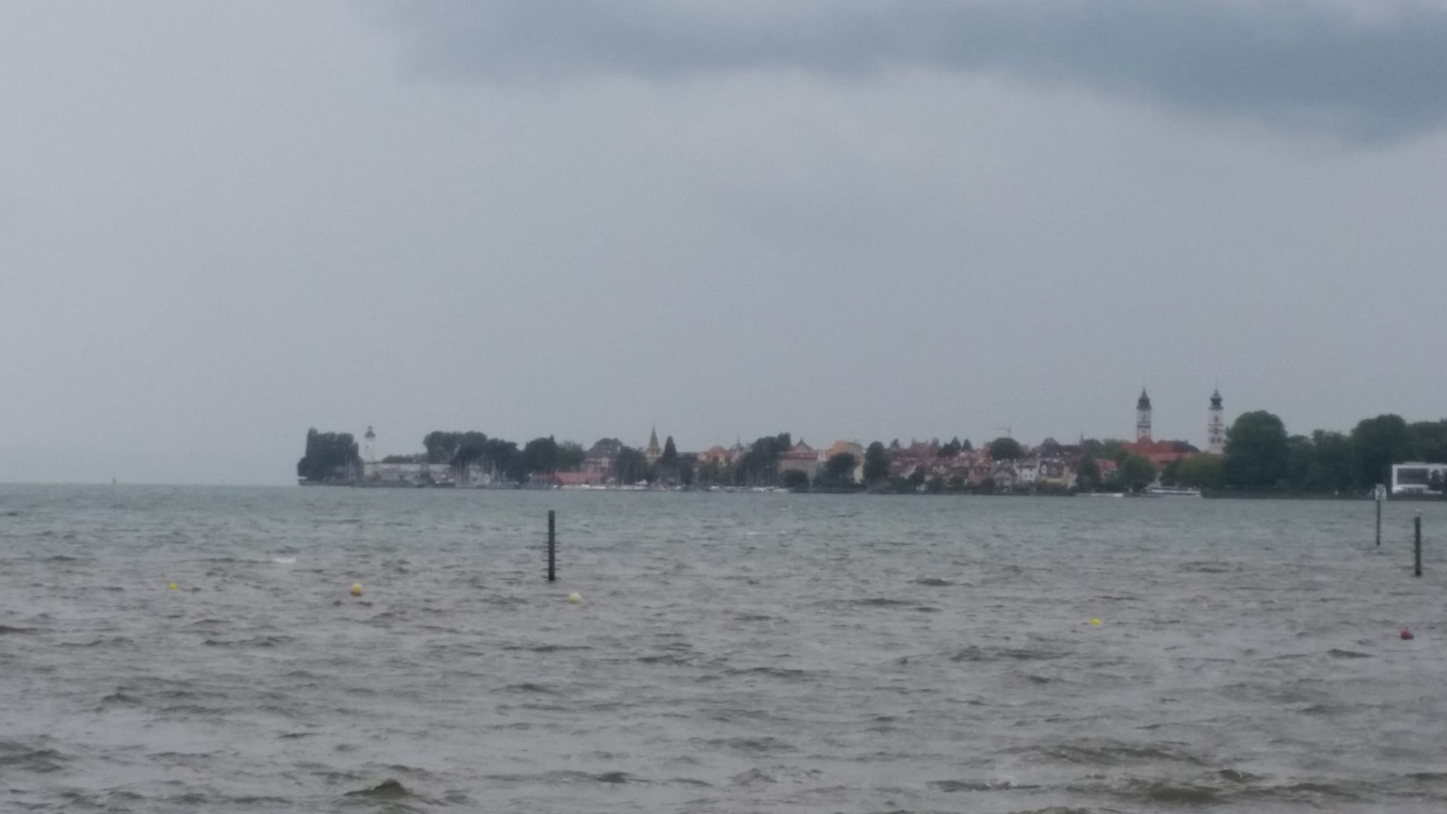 Po pokonaniu kilku większy pagórków, zjechałem na równinę w pobliże jeziora Bodeńskiego. Niestety pokazało się od najgorszej strony. Wiał silny wiatr, który podkręcał i tak kiepską aurę. Ledwo byłem w stanie podejść na brzeg i zrobić kilka zdjęć i to nie za dobrych. Nie było sensu kopać się z koniem więc pojechałem dalej. Alpy były już na wyciągnięcie ręki, na pobliskich łąkach pasły się już pierwsze alpaki. To trochę poprawiło mi humor.